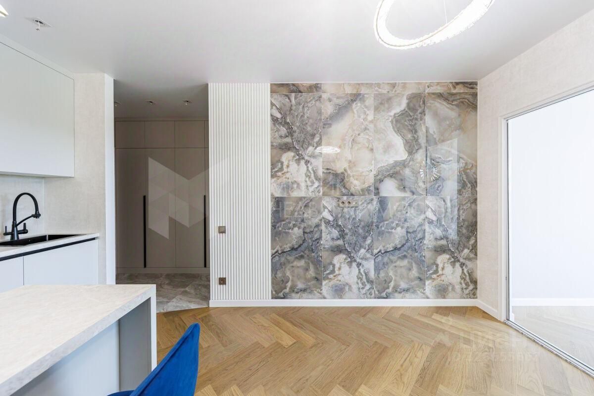 Просторная и светлая квартира формата 1 с современной отделкой расположена в новом жилом комплексе ''Скандия Квартал'' в районе Комарово.