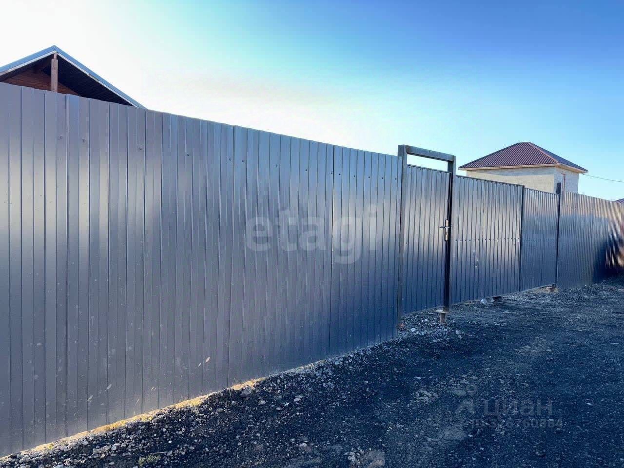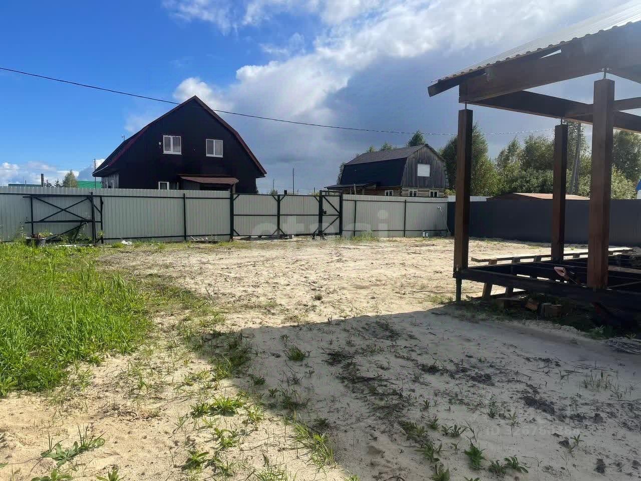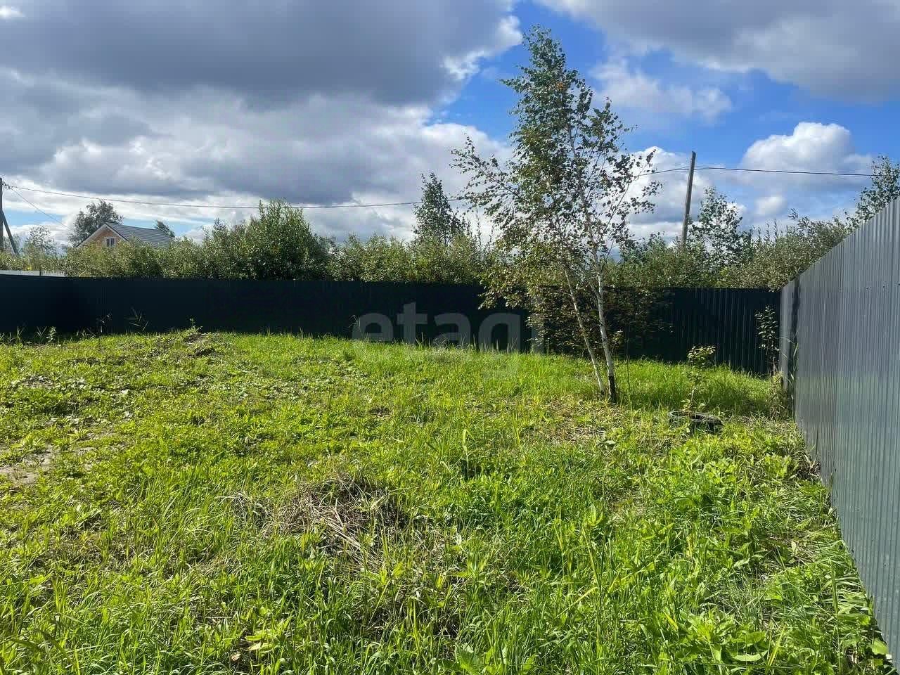 Участок площадью 8 соток расположен на высоком и ровном месте, что делает его идеальным для создания уютного двора или сада. По всему периметру участка установлен забор из профнастила.