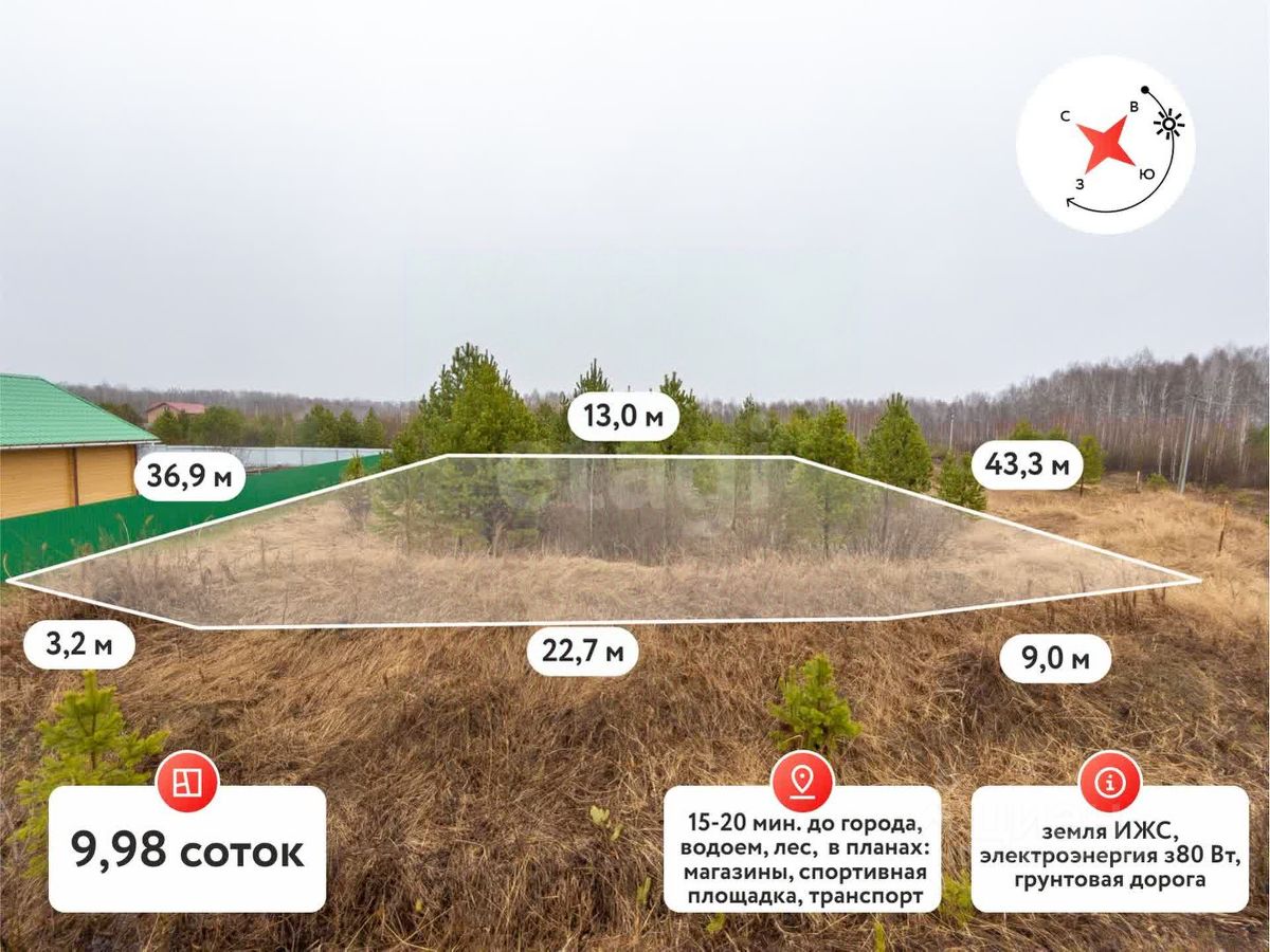 Продается угловой земельный участок площадью 10 соток на Велижанском тракте со статусом ИЖС! Это идеальное предложение для тех, кто мечтает построить свой дом в живописной местности, окруженной сосновыми и березовыми лесами. Участок расположен в первой очереди от трассы, что обеспечивает удобный доступ к городу всего за 15-20 минут без пробок.