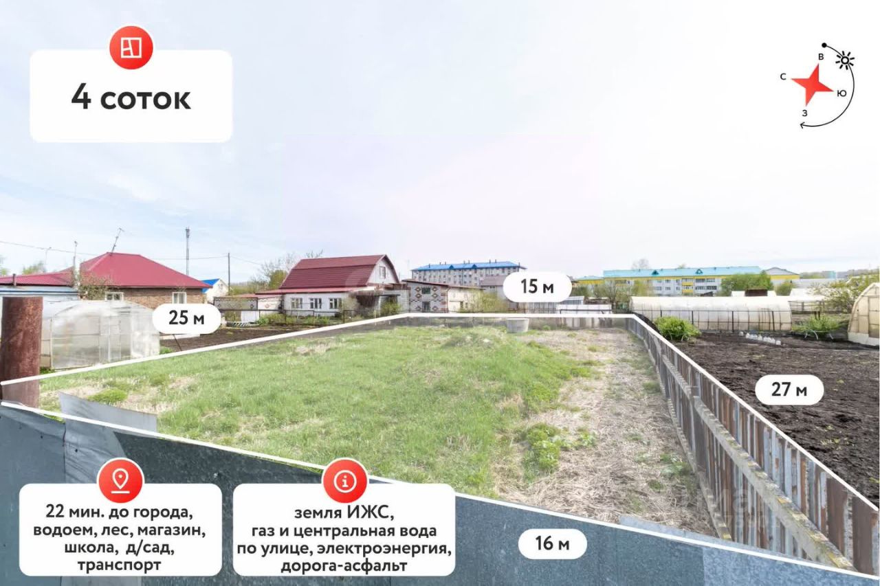 **Преимущества участка:** **Коммуникации**: Электрический столб уже установлен рядом. По улице проходят газопровод и центральный водопровод, что обеспечит вам все необходимые удобства. - **Свобода и пространство**: Участок полностью свободен и готов к строительству. Начните свою новую жизнь уже сейчас! **Высокий и не топит**: Участок подготовлен для строительства, что сэкономит ваше время и усилия. **Участок правильной формы в центре поселка.