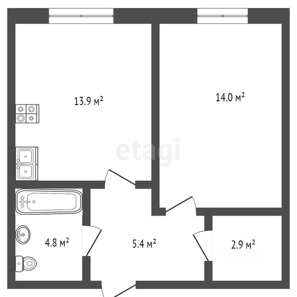 * Общая площадь: 41,2 кв. м. * Кухня-гостиная: 14 кв. м. * Спальня: 13,9 кв. м. * Прихожая: Предусмотрена удобная ниша под гардеробную или кладовую.
