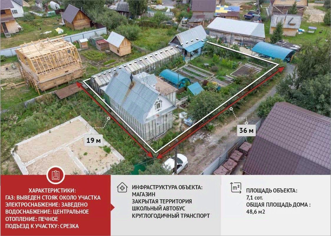 - Печь в доме (можно убрать — предусмотрено газовое отопление, газ уже проведён, труба у забора) - Колодец, 15-метровая теплица - Туалет уличный, сараи, баня с помывочной и парилкой