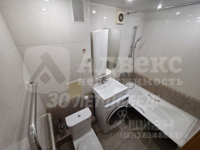 Санузел совмещенный, и здесь также есть все необходимое: остается надежная стиральная машина LG.