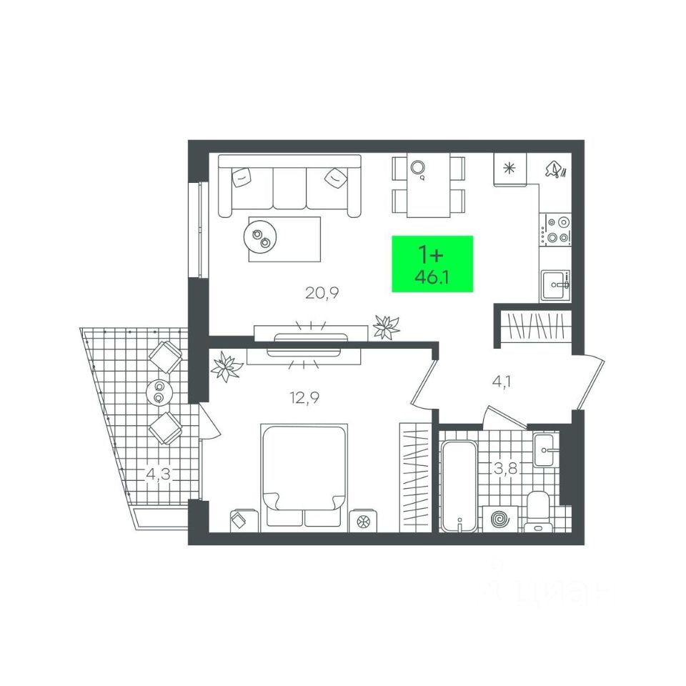 продам 1-к, Василия Малкова, гп 36 490 000 ₽
