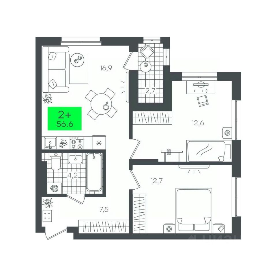 продам 2-к, Василия Малкова, гп 66 960 000 ₽