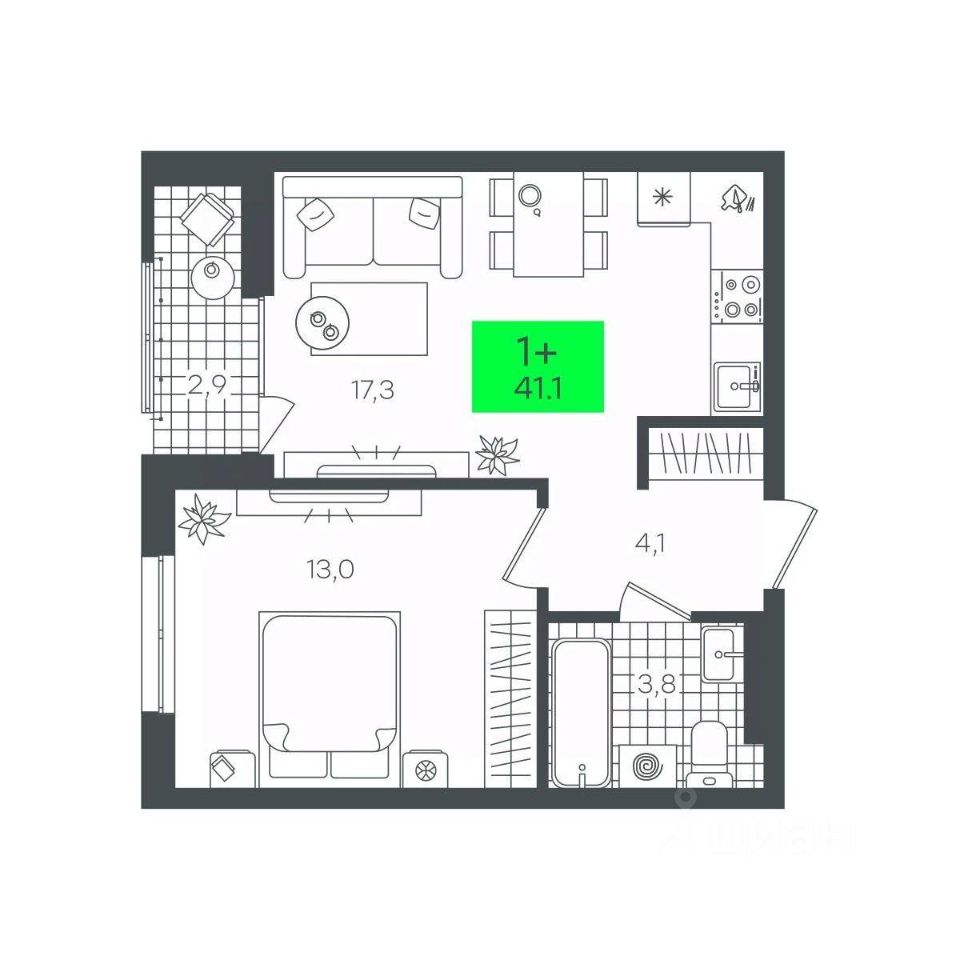продам 1-к, Василия Малкова, гп 45 800 000 ₽