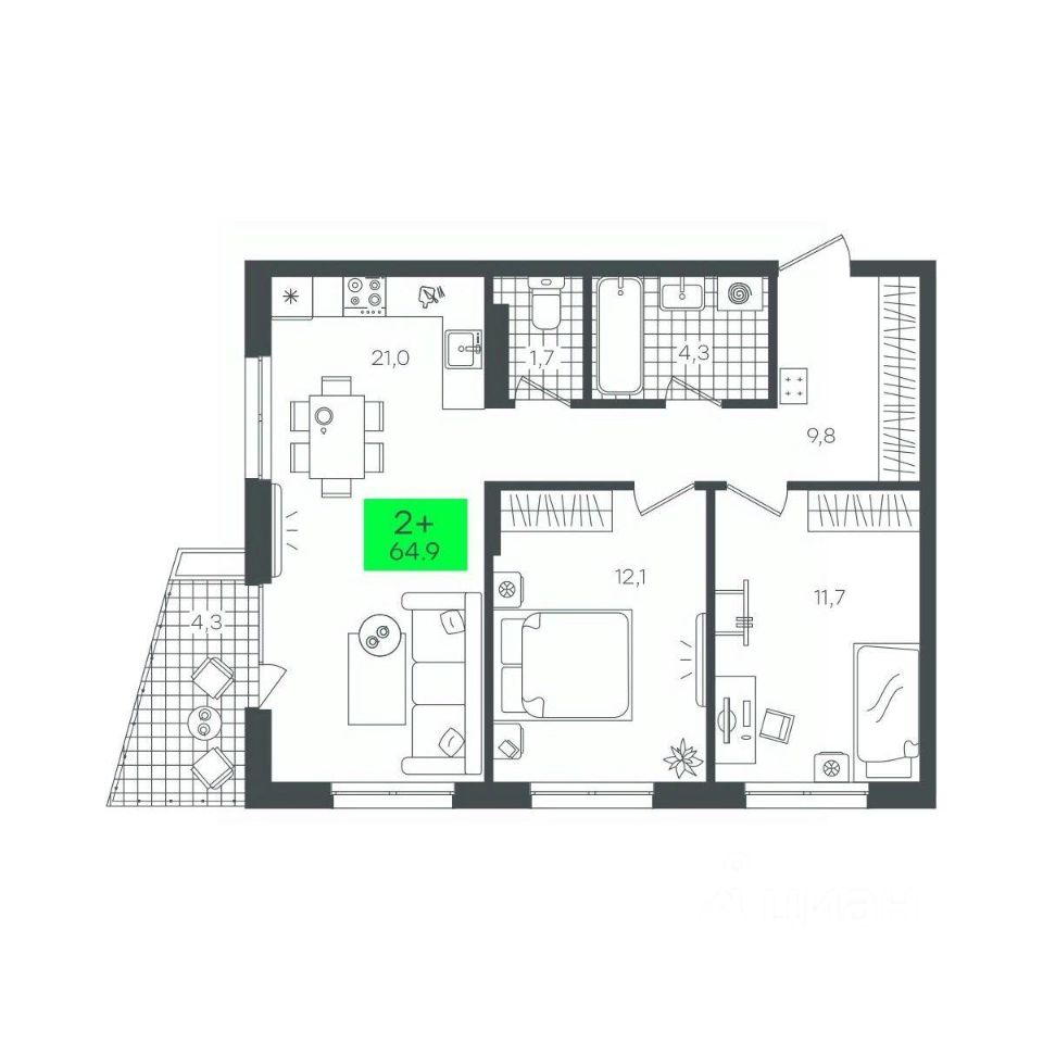 продам 2-к, Василия Малкова, гп 77 870 000 ₽