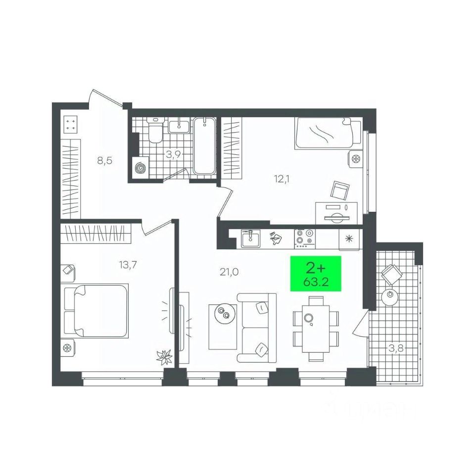 продам 2-к, Василия Малкова, гп 17 410 000 ₽