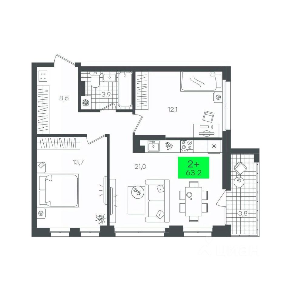 продам 2-к, Василия Малкова, гп 17 510 000 ₽