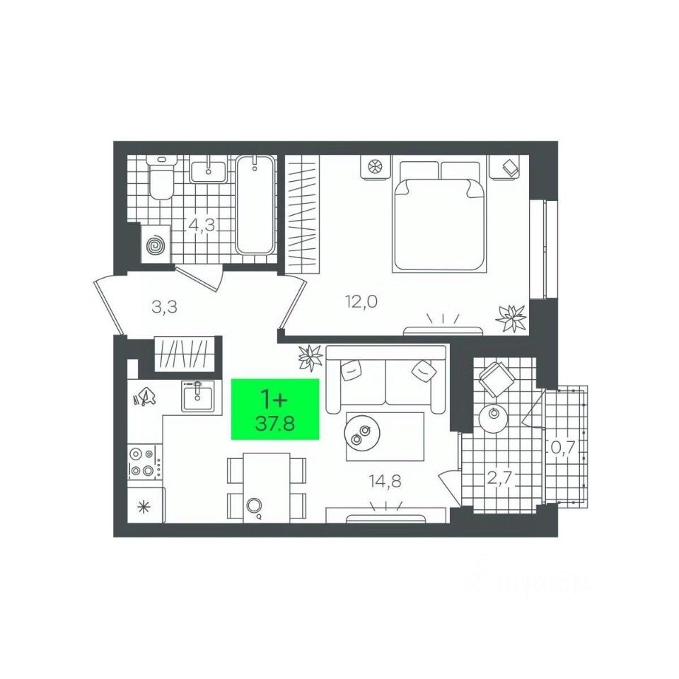 продам 1-к, Василия Малкова, гп 55 350 000 ₽