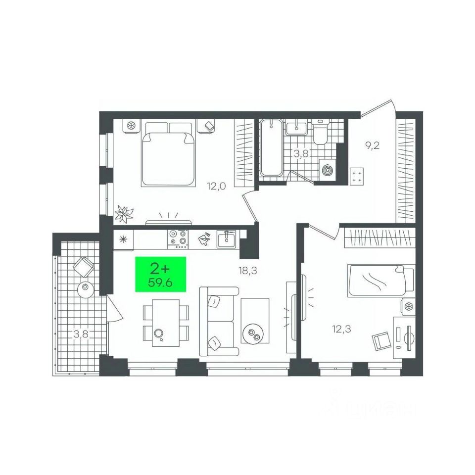 продам 2-к, Василия Малкова, гп 17 190 000 ₽