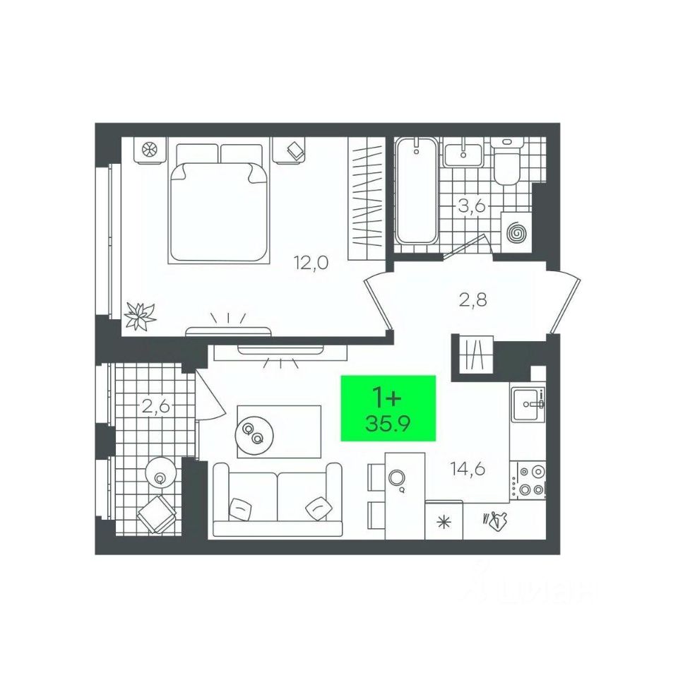 продам 1-к, Василия Малкова, гп 15 180 000 ₽