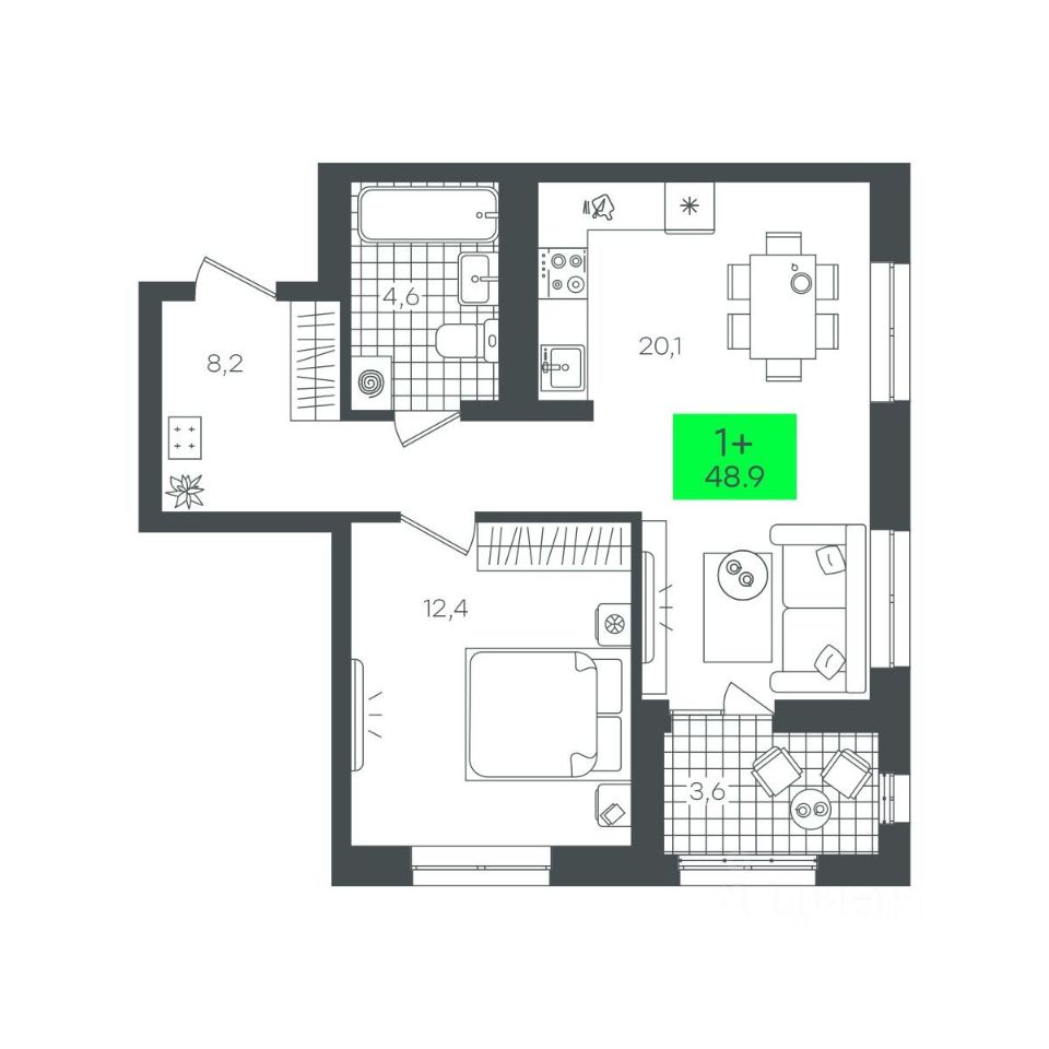продам 1-к, Василия Малкова, гп 56 380 000 ₽