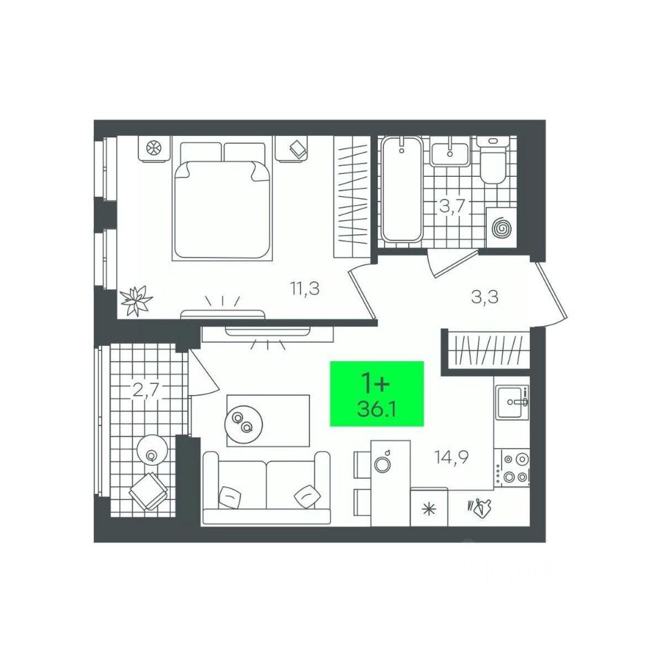 продам 1-к, Василия Малкова, гп 25 160 000 ₽