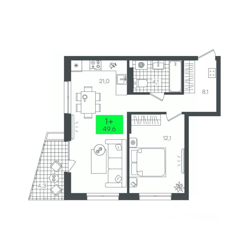 продам 1-к, Василия Малкова, гп 46 500 000 ₽