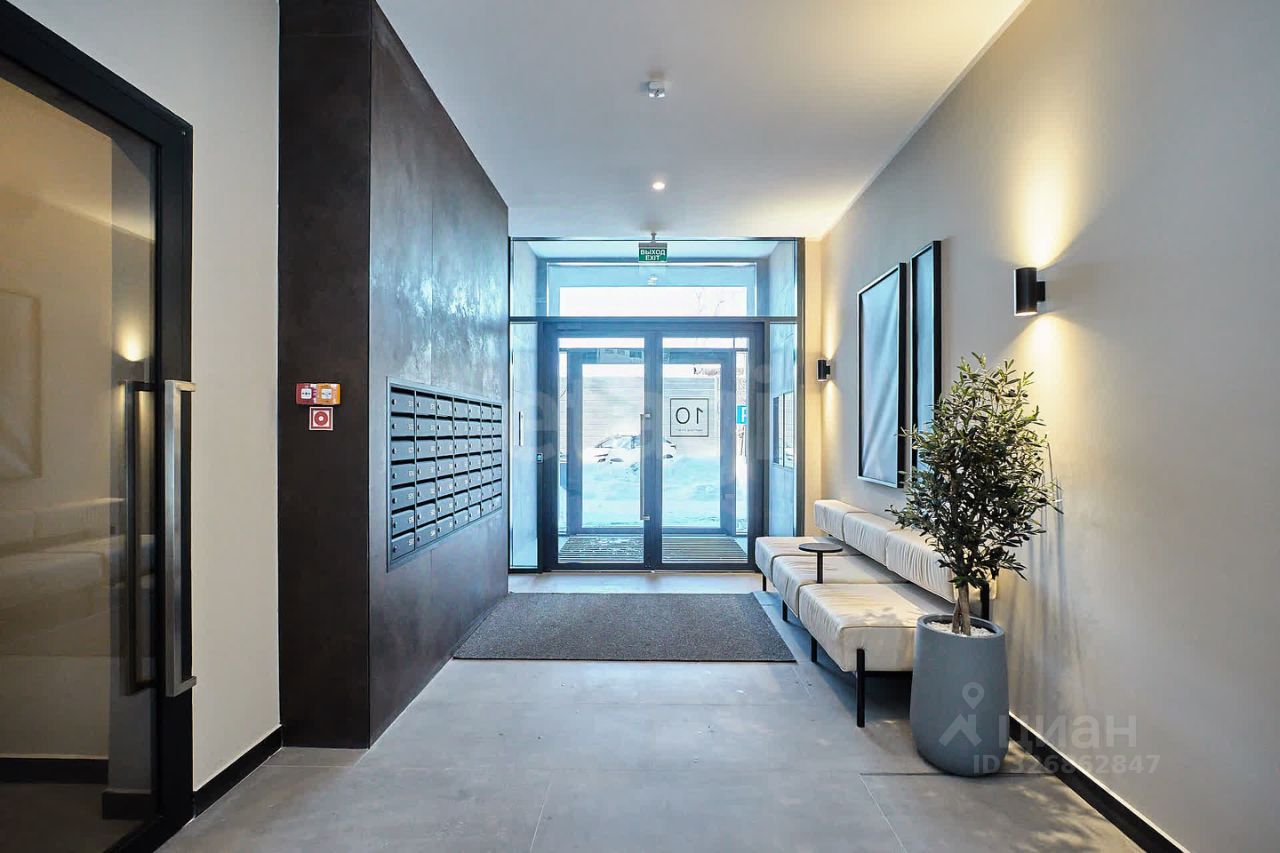 Подъезд • Входы прозрачные, на уровне земли. • Домофон в тёплом тамбуре. • Интерьеры в стилистике фасадов. • Озеленение, картины, мягкая мебель.