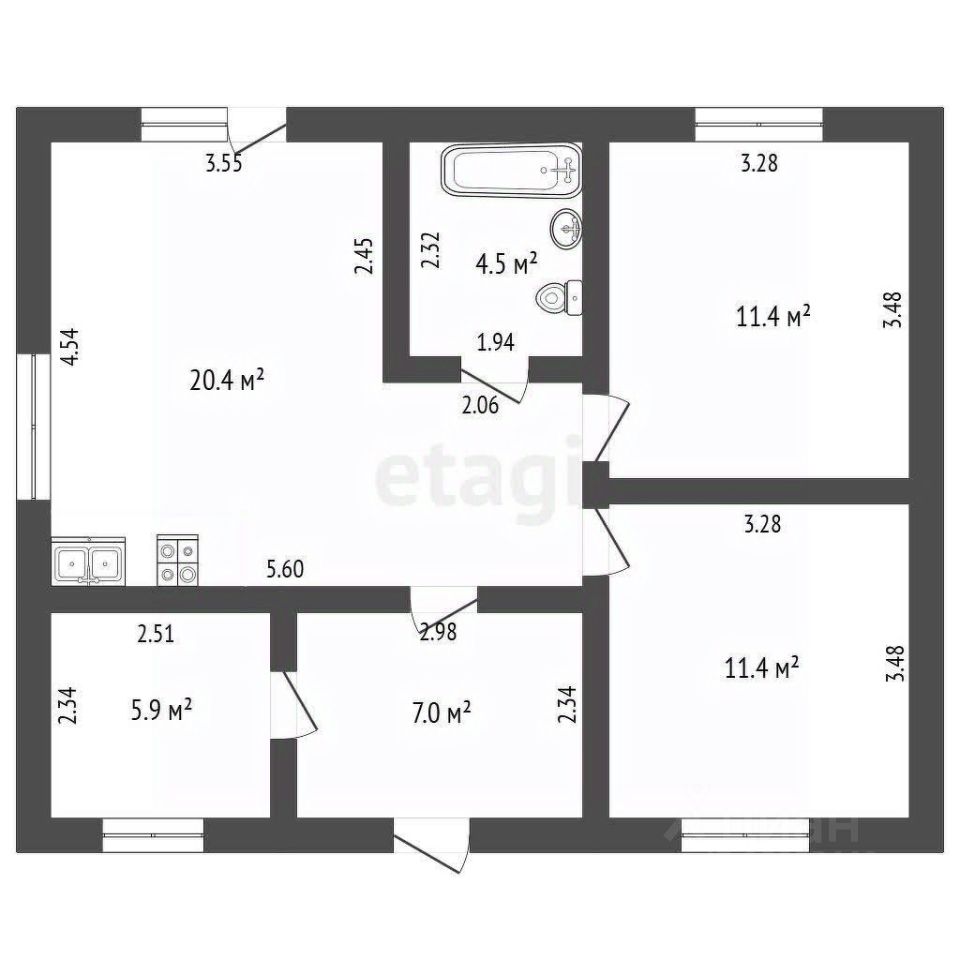 Общая площадь60,6 м2