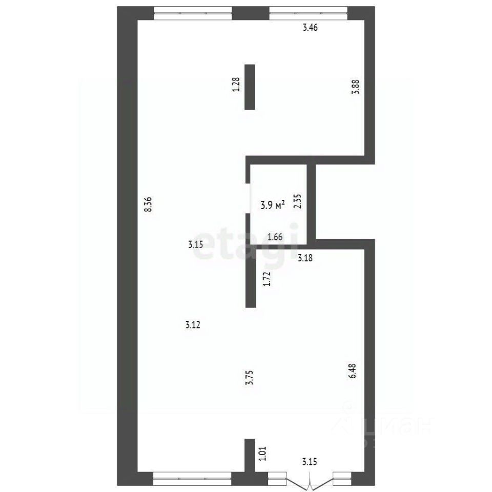 Помещение свободной планировки на первом этаже жилого дома