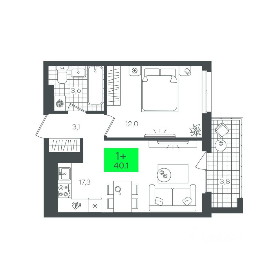 продам 1-к, Василия Малкова, гп 15 530 000 ₽