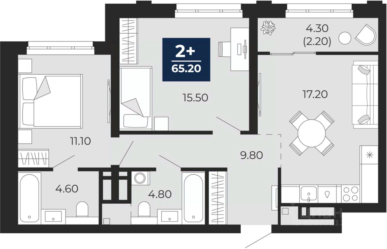 Продается 2-комн. квартира с предчистовой отделкой в ЖК ''Айвазовский City'' на 7 этаже. Общая площадь: 67.3 кв.м. Высота потолков 2.72 м.