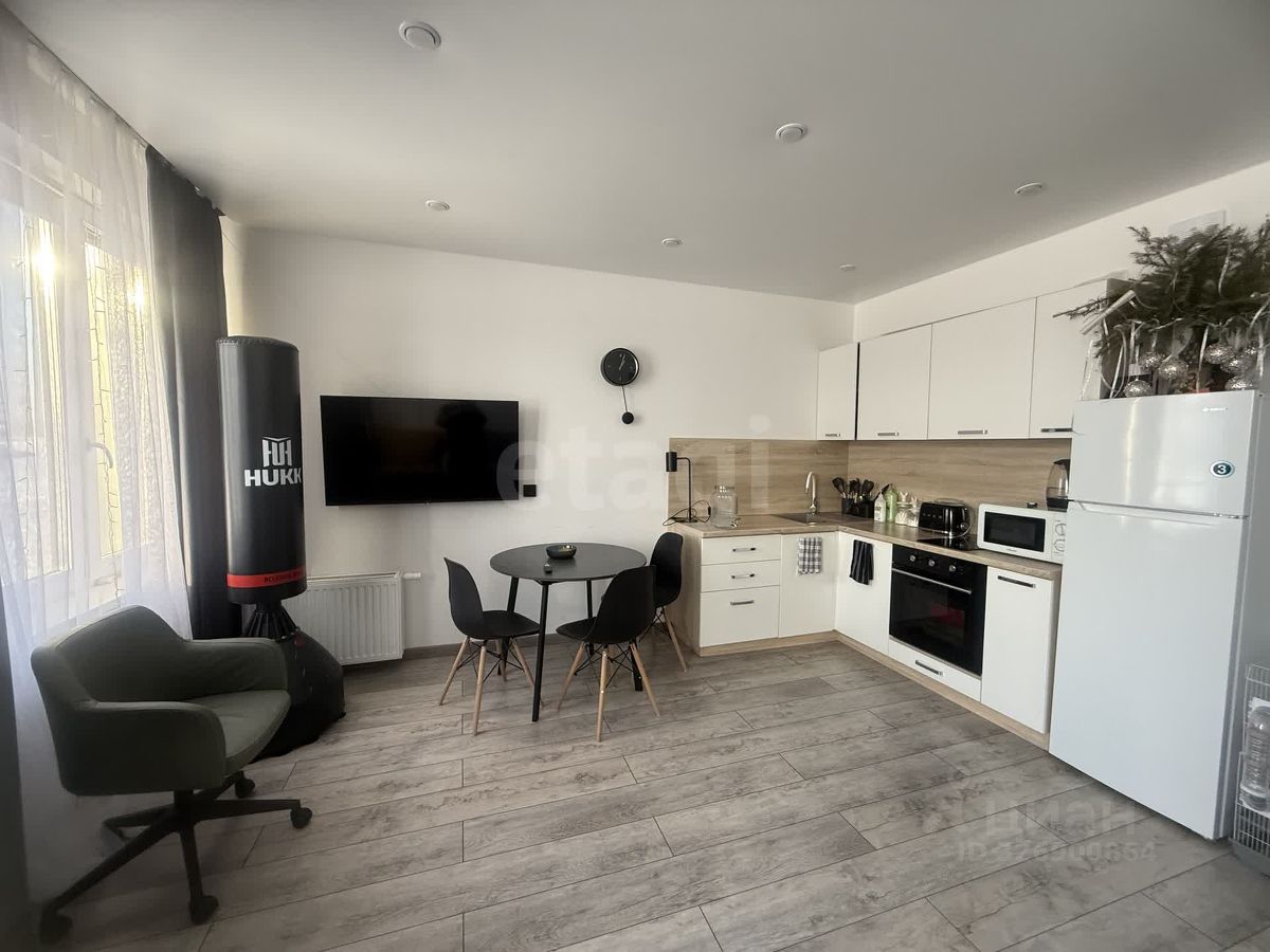 Квартира-студия площадью 33,4 м² расположена на1этаже 10-этажного нового дома в жилом комплексе ''Акватория'' на берегу реки Туры. Объект сдан с качественной чистовой отделкой ''под ключ'' и полностью готов к заселению — практически вся представленная на фото техника и мебель остаются новому владельцу. Планировка функциональна: выделена зона кухни-гостиной и отдельная гардеробная, окна выходят в тихий зеленый двор. В жилом комплексе реализованы современные системы безопасности и комфорта: видеодомофоны с возможностью управления со смартфона, бесконтактный доступ в подъезд, опция ''умный дом''. Подъезды выполнены в светлых тонах, без порогов на входе, с панорамным остеклением. Район отличается развитой инфраструктурой: в шаговой доступности находятся остановки общественного транспорта, супермаркеты и объекты повседневного спроса. На прилегающей охраняемой территории обустроена гостевая парковка с достаточным количеством мест. Это решение для тех, кто ценит современный формат жилья, готовность к жизни без дополнительных вложений и технологичный подход к организации пространства и безопасности. МЫ ГАРАНТИРУЕМ ФИНАНСОВУЮ БЕЗОПАСНОСТЬ ДЛЯ НАШИХ КЛИЕНТОВ. Код пользователя: 151638 Номер в базе: 10807050