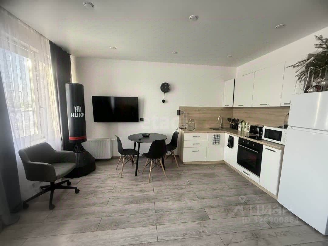 Квартира-студия площадью 33,4 м² расположена на1этаже 10-этажного нового дома в жилом комплексе ''Акватория'' на берегу реки Туры. Объект сдан с качественной чистовой отделкой ''под ключ'' и полностью готов к заселению — практически вся представленная на фото техника и мебель остаются новому владельцу. Планировка функциональна: выделена зона кухни-гостиной и отдельная гардеробная, окна выходят в тихий зеленый двор. В жилом комплексе реализованы современные системы безопасности и комфорта: видеодомофоны с возможностью управления со смартфона, бесконтактный доступ в подъезд, опция ''умный дом''. Подъезды выполнены в светлых тонах, без порогов на входе, с панорамным остеклением.