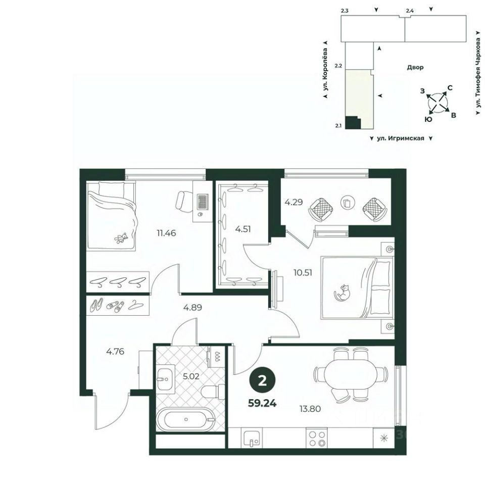 продам 2-к, Королева, 20979 043 800 ₽