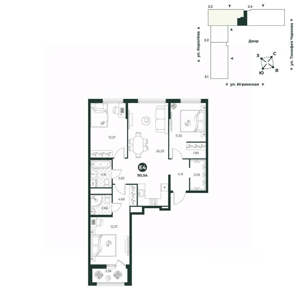 продам 4-к, Королева, 209710 965 900 ₽