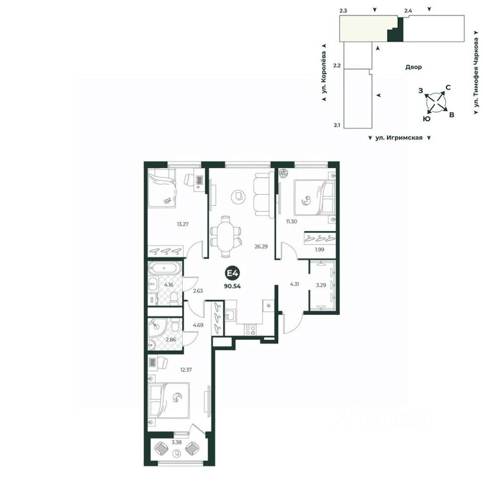 продам 4-к, Королева, 209711 200 400 ₽