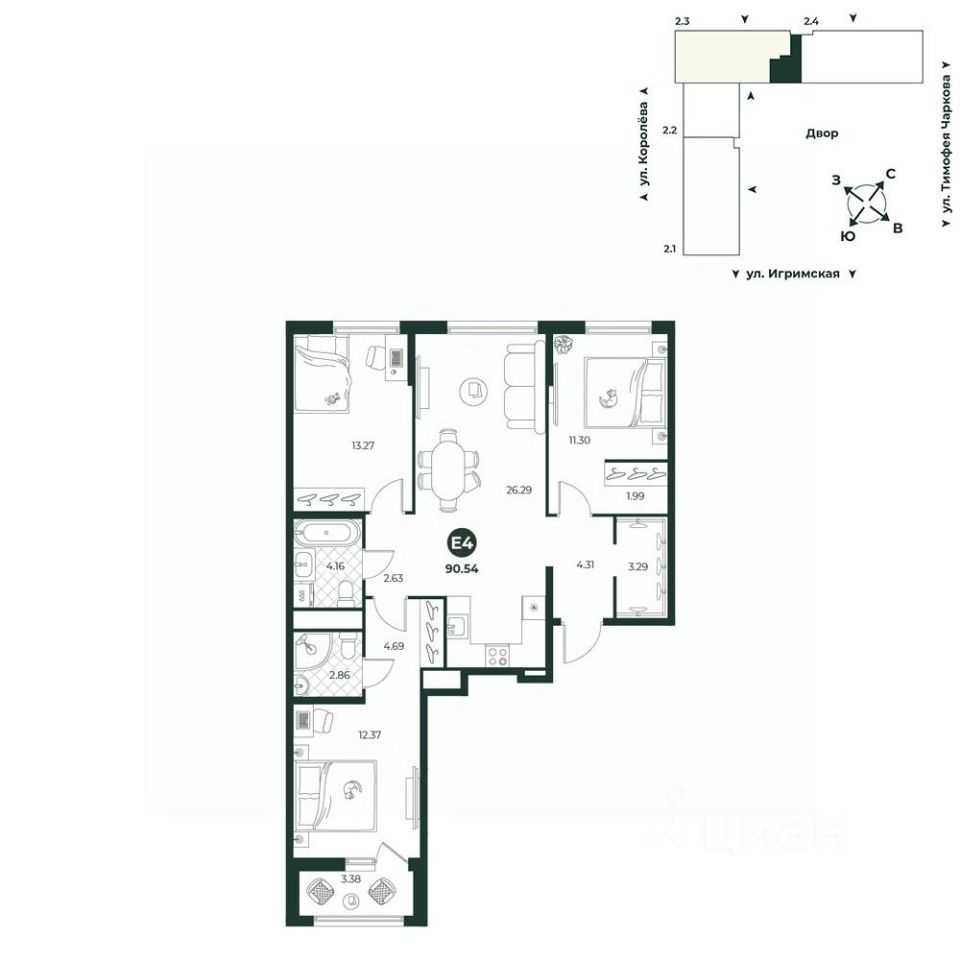 продам 4-к, Королева, 209711 259 100 ₽