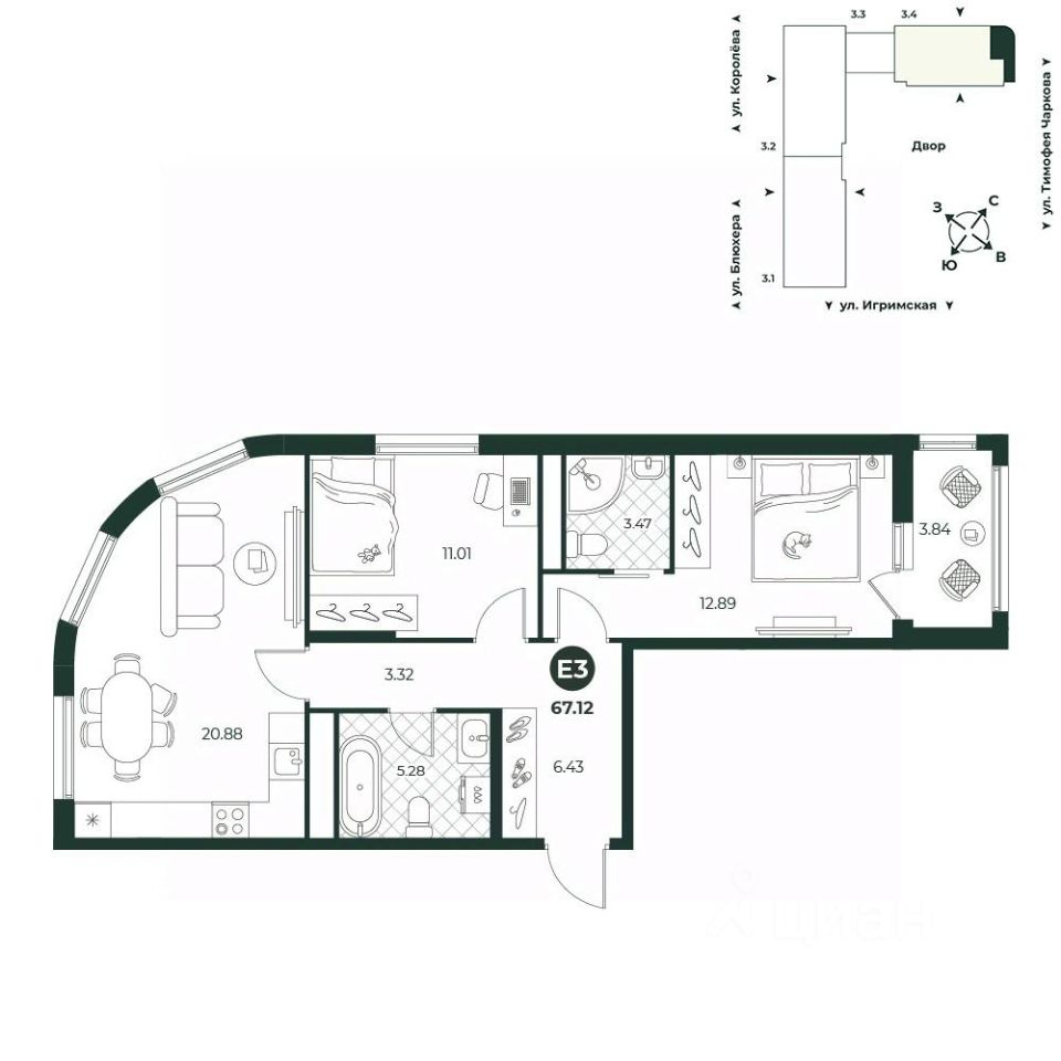 продам 3-к, Королева, 20989 424 000 ₽