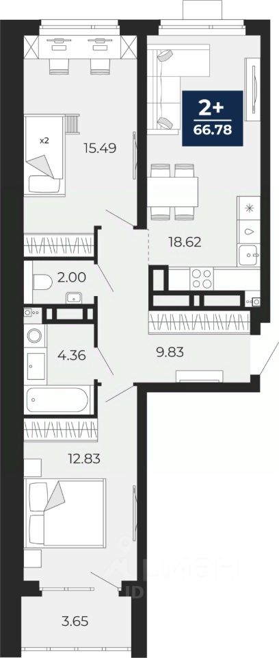 Продается двухкомнатная квартира с предчистовой отделкой в ЖК ''Прео'' на 16 этаже. Общая площадь: 66.78 кв.м. Высота потолков 2.7 м.