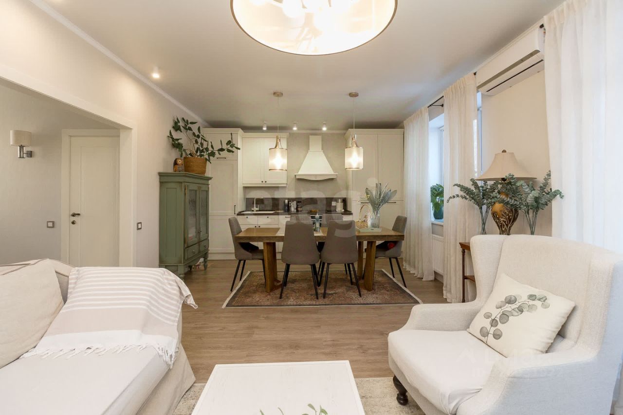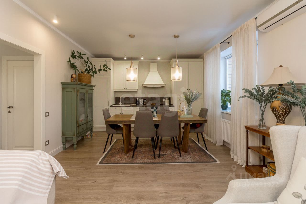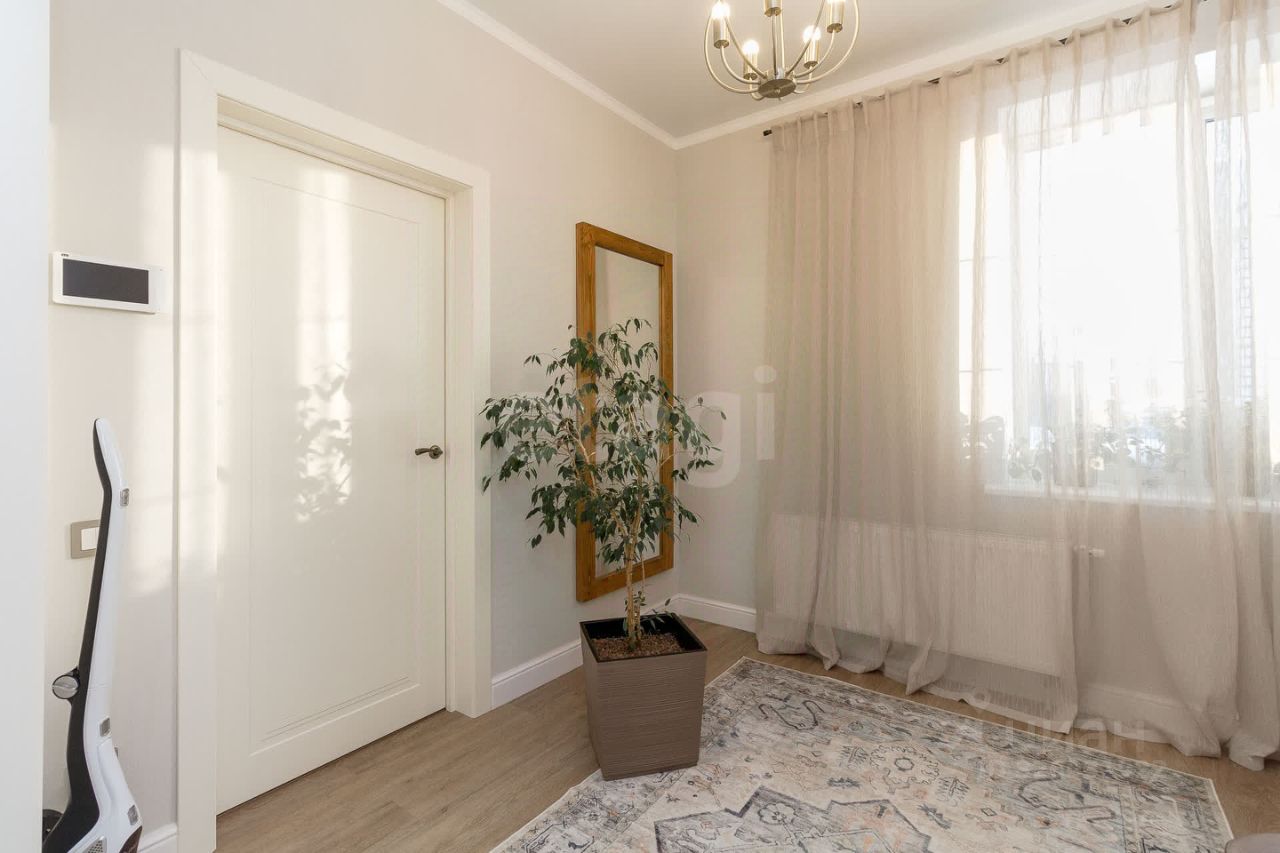 Таунхаус площадью 102,4 кв.м. в малоэтажном квартале ''Зеленые аллеи'' предлагает готовое комфортабельное жилье для семьи. Объект расположен в экологически благоприятном районе, всего в 10 минутах езды от центра Тюмени. Планировка включает три уровня: на первом этаже находится просторная кухня-гостиная 30,8 кв.м. с кухонным гарнитуром ''Лорена'' и встроенной техникой. В просторном холле стены отделаны римской штукатуркой. Лестница из натурального дуба ведет на второй этаж, где расположены две изолированные спальни, гардеробная и большая ванная комната с окном, душевой кабиной и ванной из натурального камня. Третий этаж представляет собой утепленную мансарду площадью около 50 кв. м, что дает значительный резерв свободного пространства. Особенностью объекта является полная меблировка и детализированная отделка: вся мебель из натурального дерева, качественная сантехника, продуманные системы хранения и освещения. К дому прилегает собственный участок в 2,17 сотки с облагороженной зоной отдыха, пол отделан плитняком, на участке плодово-ягодные насаждения. Перед домом парковочная площадка на два автомобиля. Инфраструктура квартала включает охрану и видеонаблюдение, собственную управляющую компанию, детские и спортивные площадки, 7,5 км велодорожек и зону отдыха у пруда. Обеспечены центральные коммуникации: газовое отопление, городская канализация и вода с системой очистки. Объект сочетает приватность загородной жизни с городской пропиской и развитой транспортной доступностью.