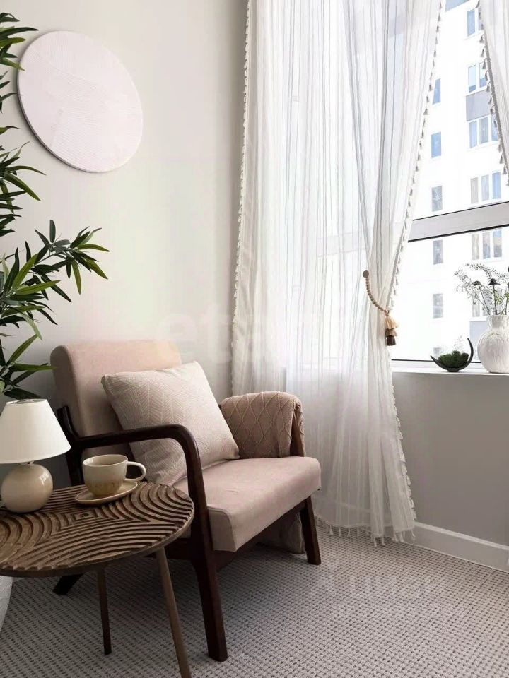 Изюминка дома - теплая лоджия с большими окнами и невероятно комфортным креслом для отдыха и чтения.
