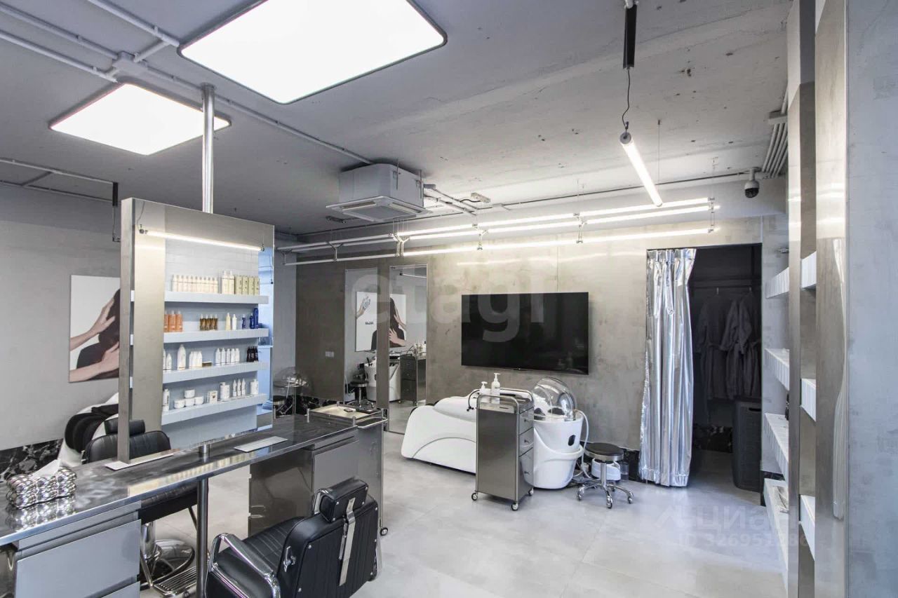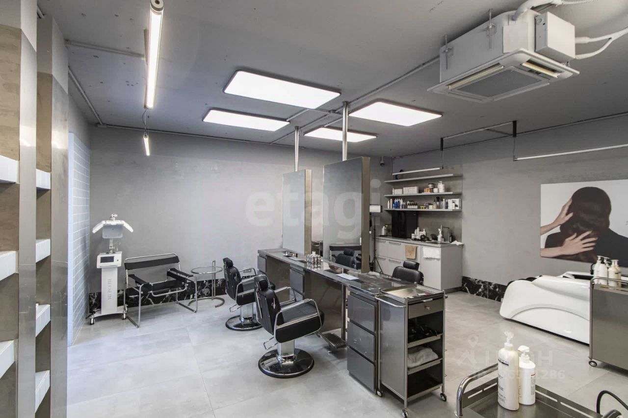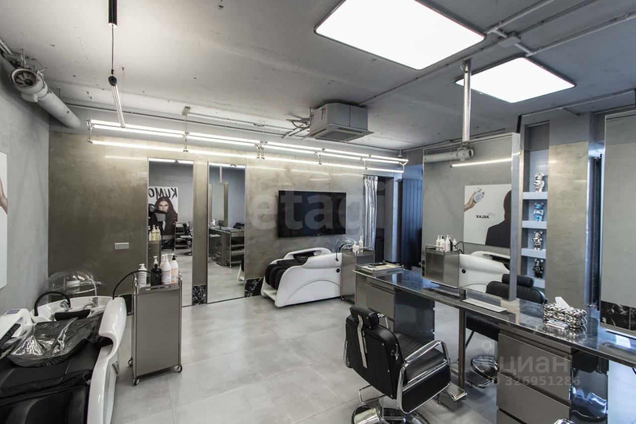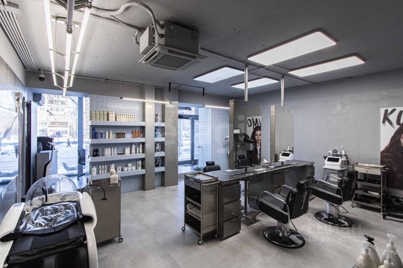 Дизайнерский ремонт премиум-класса. Вся инженерия заточена под салон красоты: усиленная электрика, вытяжки, 2 кондиционера, тепловая завеса. Полная комплектация: от парикмахерских кресел и моек до кофемашины и системы видеонаблюдения.