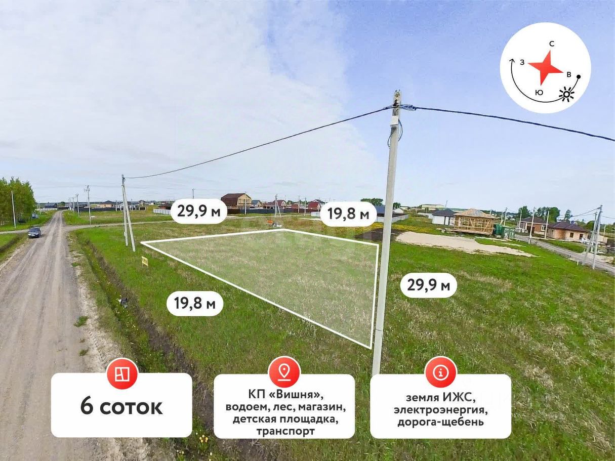 Продаем земельный участок 6 соток ИЖС, расположенный в коттеджном поселке''Вишня'', вблизи деревни Чикча, по СтароТобольскому тракту. Подъездные пути отсыпаны песчано-гравийной смесью, вдоль улицы проходят линии электропередач. В перспективе планируется газификация всего поселка. Рядом полным ходом идет строительство домов для постоянного проживания. С каждым днем популярность коттеджного поселка набирает обороты, соответственно рост цены и спроса гарантирован!!! Вблизи поселка находятся деревни Есаулово и Якуши, в которых уже сейчас активно развита вся инфраструктура, необходимая для постоянного проживания (школа, детский сад, фельдшерско-акушерский пункт, аптеки и магазины). Звоните! Проведем показ в любое удобное для Вас время! МЫ ГАРАНТИРУЕМ ФИНАНСОВУЮ БЕЗОПАСНОСТЬ ДЛЯ НАШИХ КЛИЕНТОВ. Код пользователя: 131994 Номер в базе: 7825915