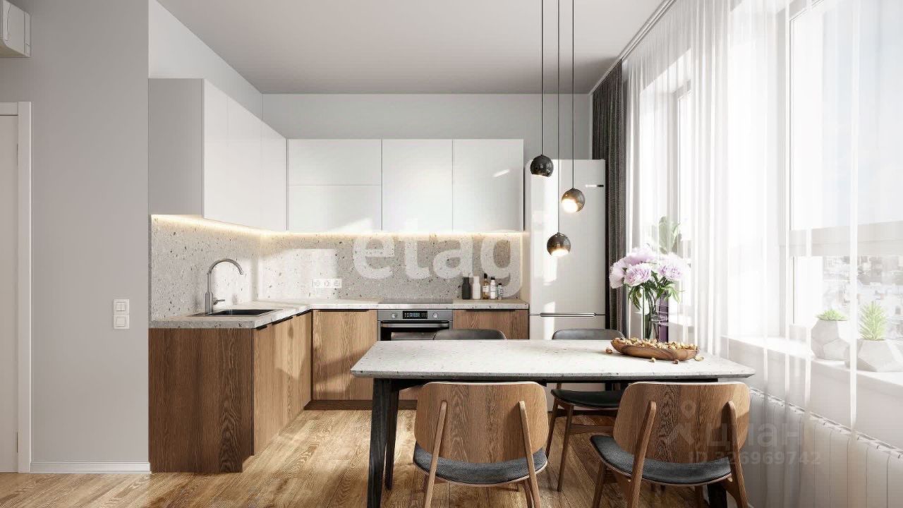 Отделка и мебель. Квартира — с готовой отделкой. Установлена сантехника, проведены все коммуникации. Ламинат оттенков натурального дерева, светлые обои и белоснежные натяжные потолки визуально увеличивают пространство и станут идеальной базой для любого интерьера.