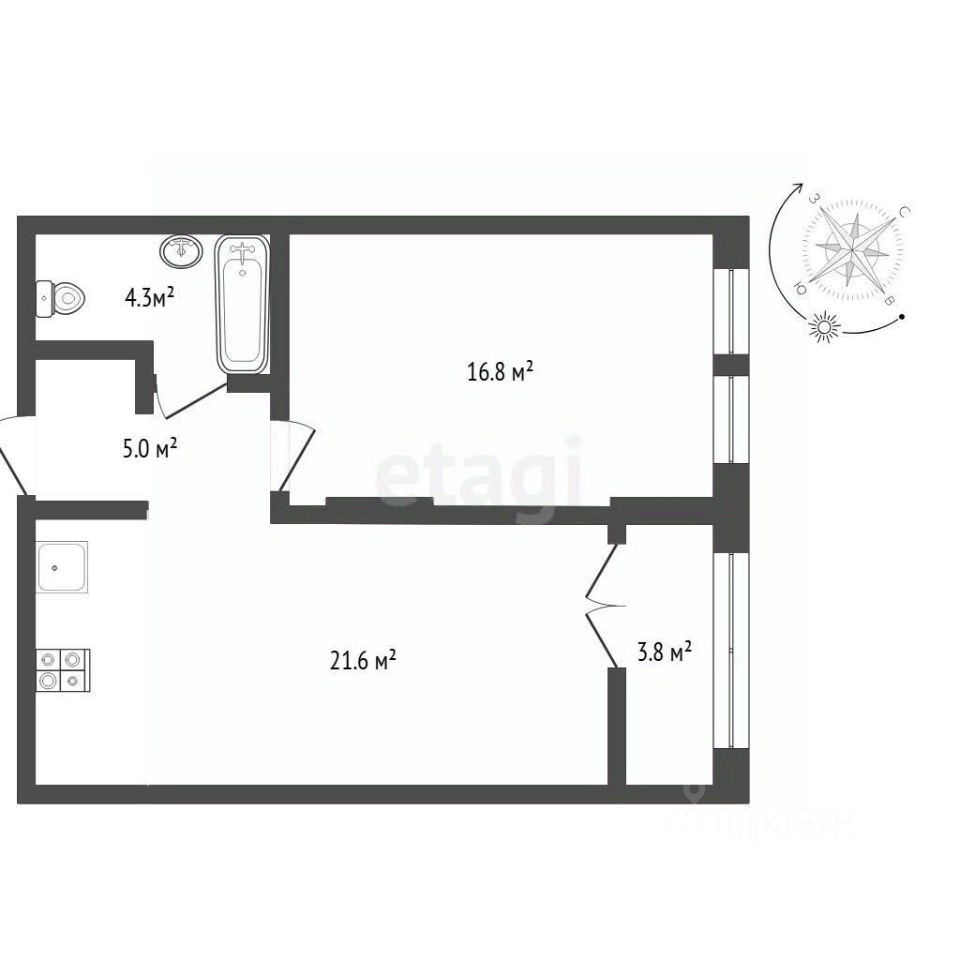 Просторная студийная зона (кухня-ниша 5,1 м² + столовая 16,47 м²) позволяет создать стильное и функциональное жилое пространство без перегородок. Отдельная уютная спальня 16,78 м² — ваше личное убежище для отдыха. Теплая лоджия 3,76 м² — дополнительное пространство для утреннего кофе, чтения или хобби в любую погоду. Современный санузел 4,34 м² и удобная прихожая.