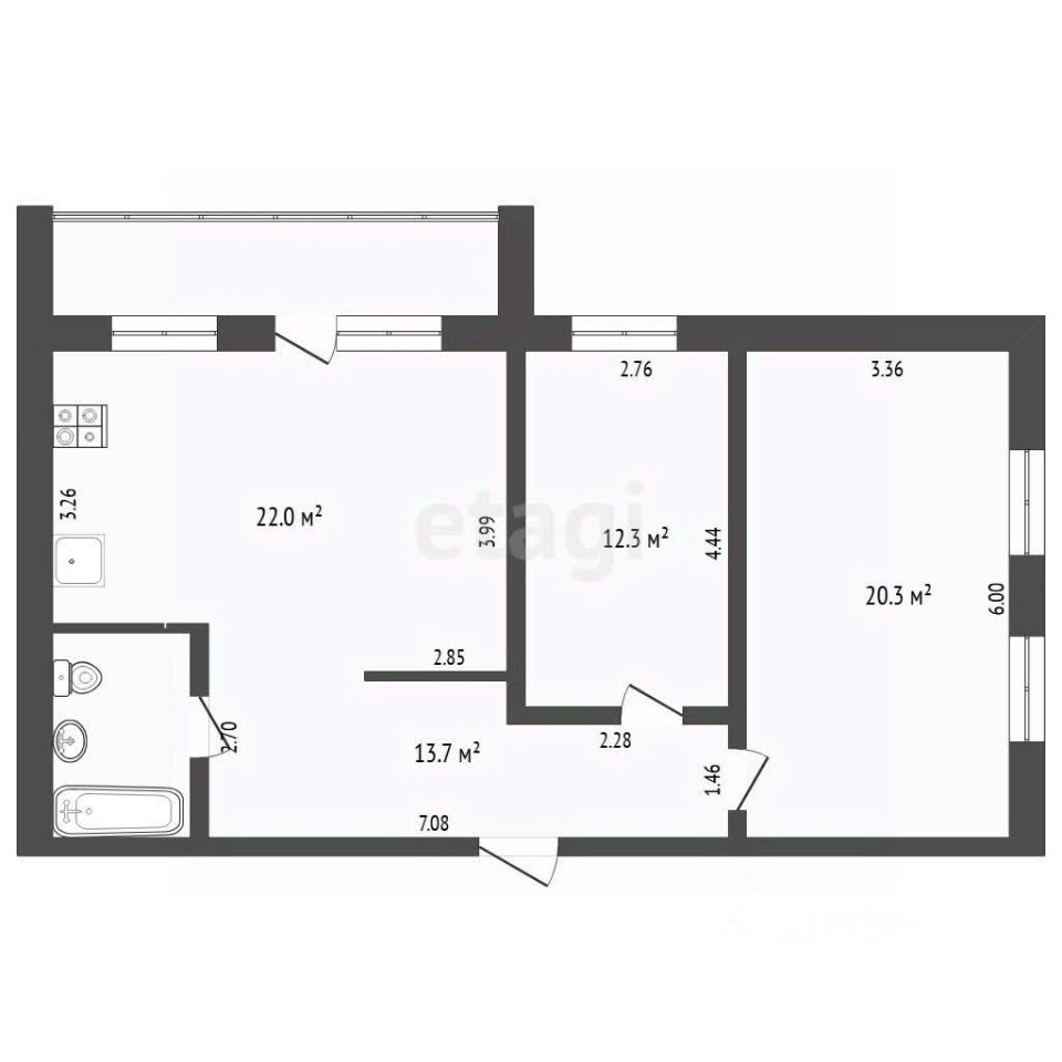 Квартира 3-комнатная.