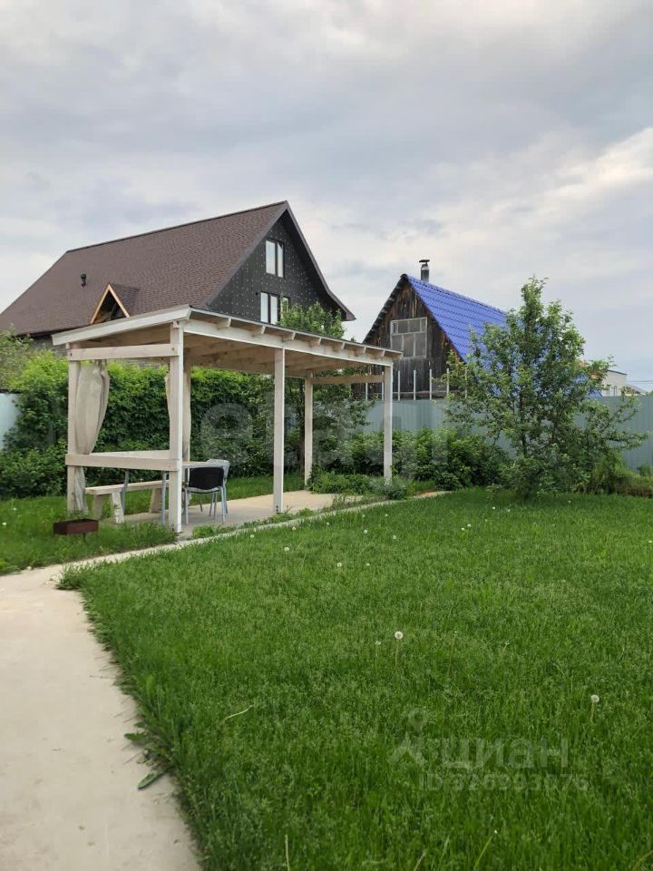 Территория участка благоустроена: передний двор (4 сотки) оформлен газоном, дорожками и беседкой, здесь же высажены две взрослые яблони, малина, клубника и различные сорта смородины. Задний двор отведён под небольшой огород (1 сотка) и ещё одну яблоню.