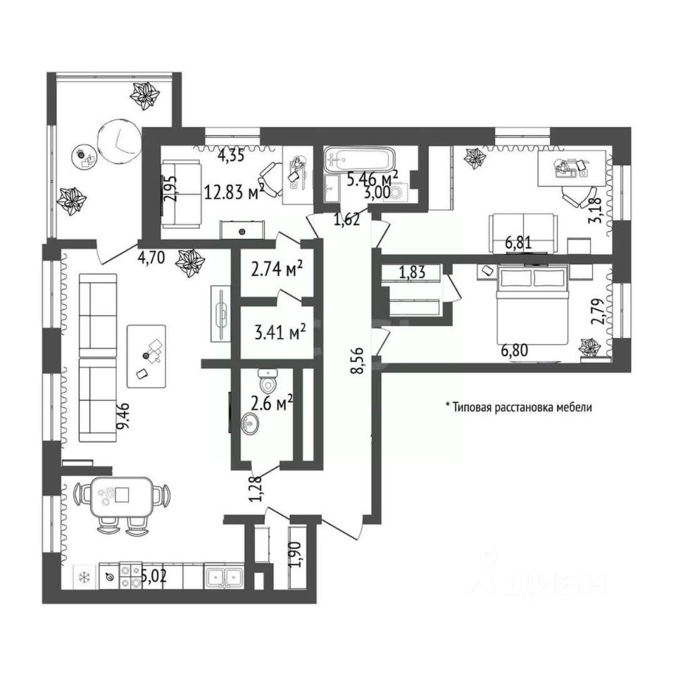 Идеально продуманный дизайн-проект, основанный на улучшенной планировке ''3+'', создает атмосферу простора и уюта. Площадь квартиры разделена на функциональные зоны: просторная кухня-гостиная, три светлые спальни, современная ванная комната с душевой кабиной и удобная гостевая уборная. Дополнительно вы получите теплый кабинет площадью 11 кв.м., который не входят в общую площадь квартиры.