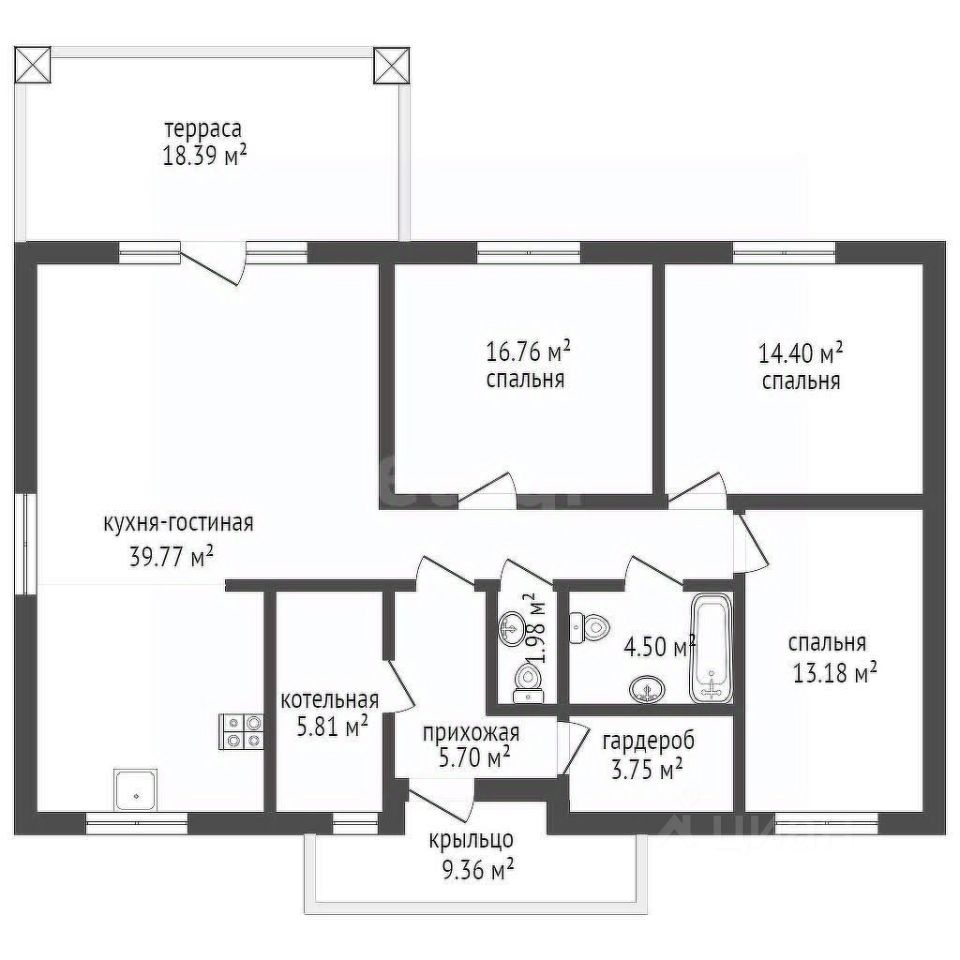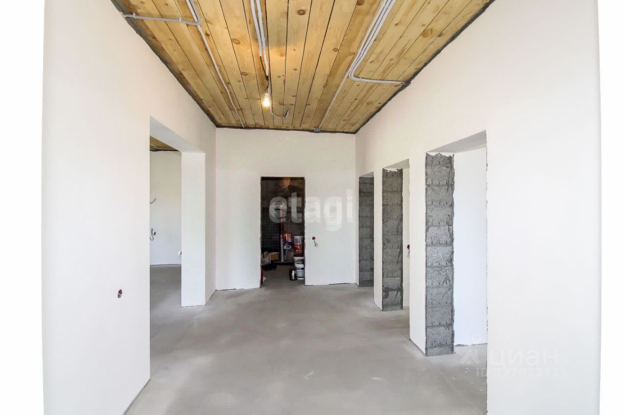 Планировка включает: большую кухню-гостиную, три просторные спальни, котельную, большой сан. узел, гардеробную. Дом продается с улучшено-черновой отделкой, стены выровнены, заштукатурены, все коммуникации протянуты,дом готов для Ремонта Вашей Мечты!. Коммуникации: электричество, скважина, септик 10 м, отопление электрокотел( при желании есть возможность подключить газ) . Дом из керамзитового блока, утеплителя 100 мм , фасад из керамического кирпича либо штукатурки ''Короед''. Фундамент: монолитная армированная плита, теплый водяной пол+радиаторы по всему дому. Утепление крыши: минеральная вата 150 мм. Мягкая кровля, окна - тройной стеклопакет. Участок выровнен, подготовлен под насаждения и огорожен забором.