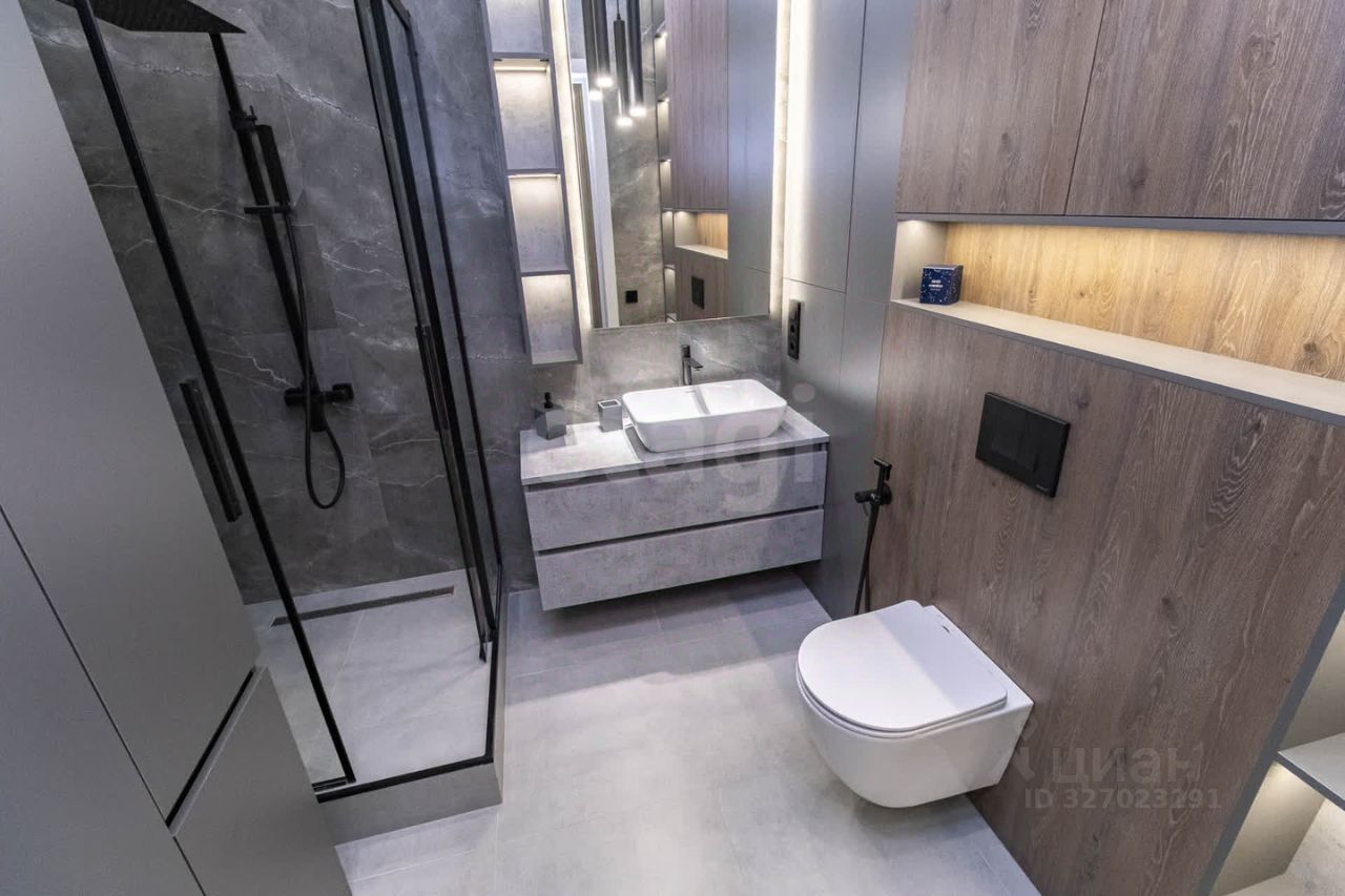 О КВАРТИРЕ: Площадь квартиры (с балконом 70 кв.м.), жилая - 62,1 кВ.м, просторная кухня-гостиная 22,6 кВ.м, спальня 14,8 кВ.м с выходом на балкон 7,5 кВ.м с шикарным видом на панораму города, большой санузел 6 кВ.м. Ремонт квартиры выполнен по дизайн-проекту в современных тонах из дорогих высококачественных материалов. На полу кварцвиниловое покрытие 43 класса, натяжные потолки с теневым алюминиевым профилем, плинтуса из МДФ, стены под покраску, все декоративные элементы на стенах (панели, рейки) из МДФ, в ванной крупноформатный керамогранит. Вся сантехника в санузле фирмы Allen brau и Kerama marazzi. В кухне и санузле - теплые полы!