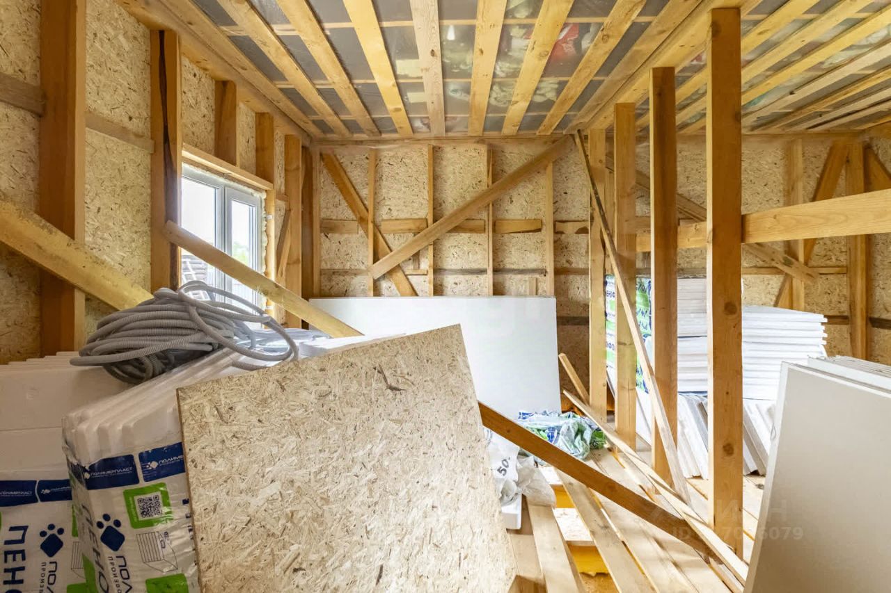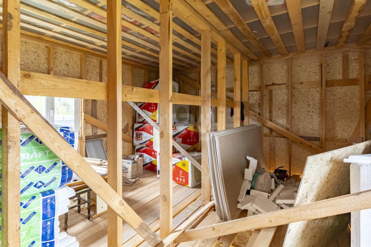 Дом: Предлагаем к приобретению каркасное жилое строение, расположенное на винтовых сваях. Внешняя стена выполнена из OSB, а внутренние полости каркаса подготовлены под утеплитель толщиной 150 мм. В наличии частичные строительные материалы для внутренней отделки. Снаружи дом утеплен пеноплексом толщиной 50 мм и оштукатурен, подготовлен для нанесения финишной штукатурки под короед. Установлены пластиковые окна и качественные входные двери. Крыша покрыта металлосайдингом. Дом находится на участке площадью 4 сотки, который пока не обработан и свободен от насаждений — идеальное пространство для реализации вашего уникального ландшафтного проекта. Уже установлен сруб под баню.