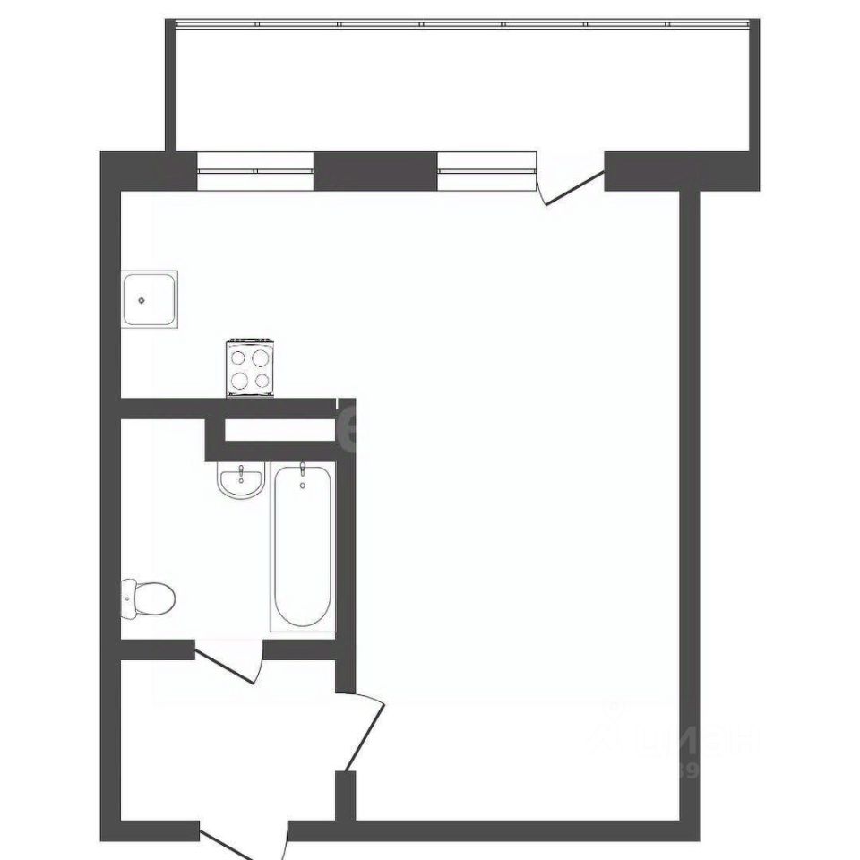 Студия в улучшенной черновой отделке, 31 кв. без учета лоджии. Планировка с двумя окнами, позволяет отделить зону кухни от комнаты. Один совмещенный санузел, в санузле сделана сантехническая разводка, подготовлен подвесной унитаз и кафель.
