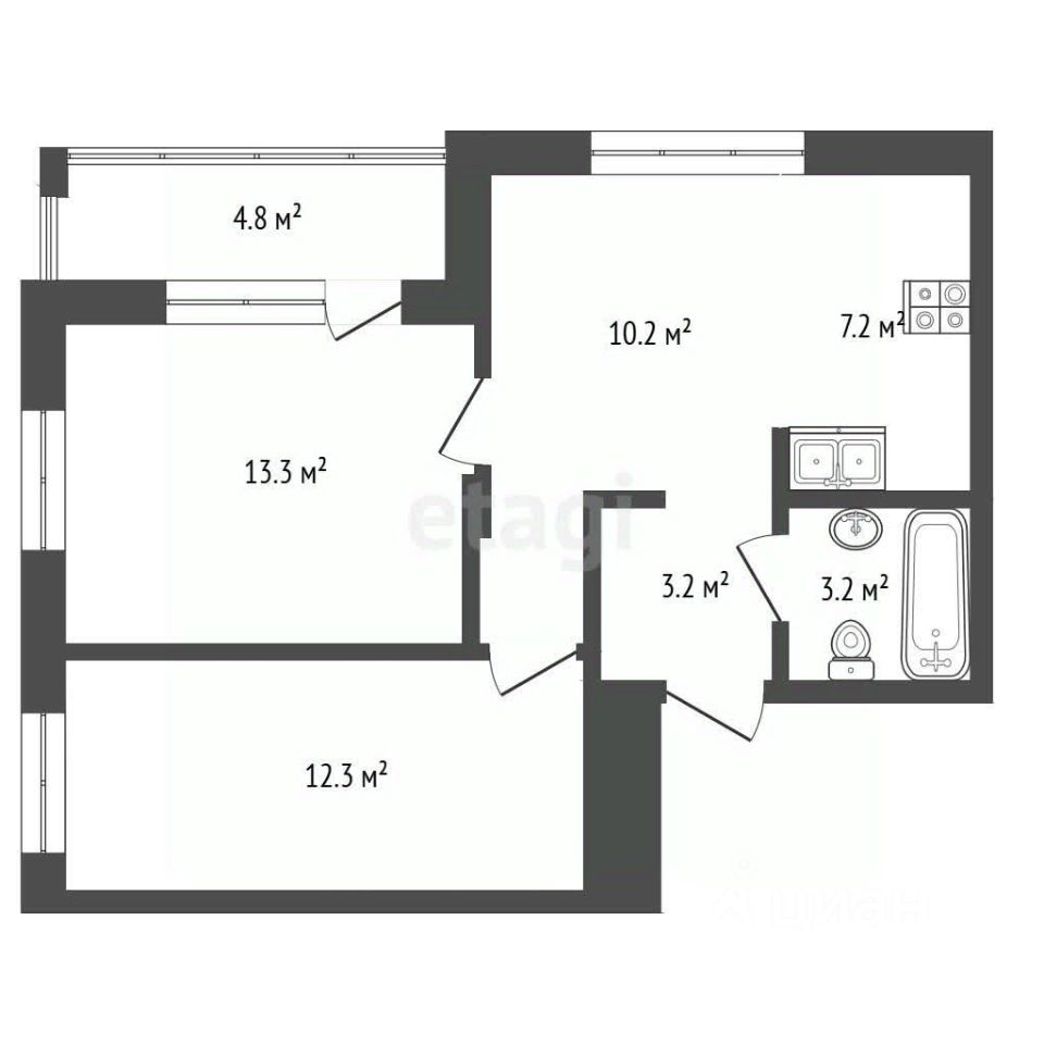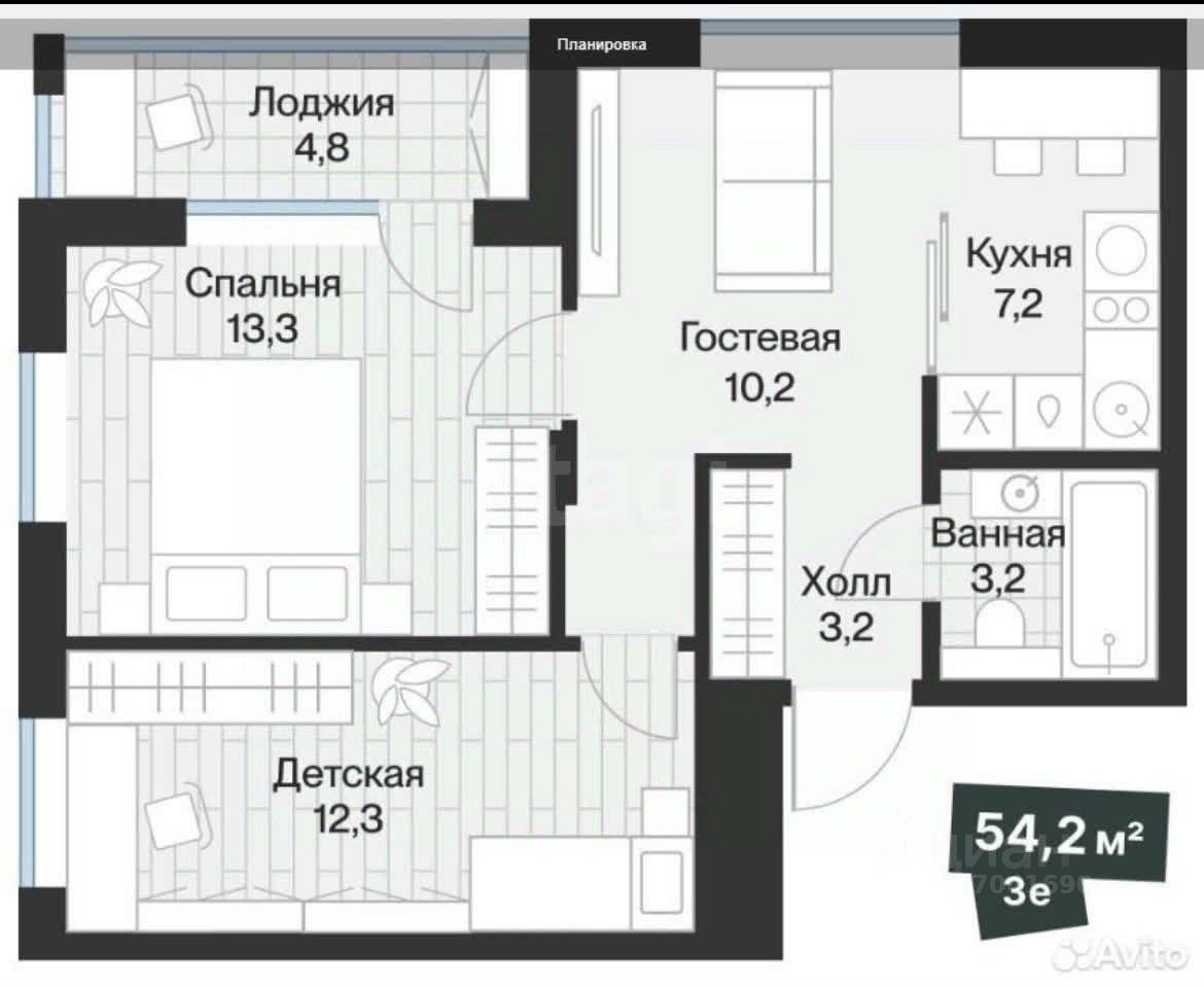 Вас ждет уникальная планировка, которая сочетает в себе комфорт и функциональность. Просторная кухня-гостиная площадью 17 кв.м. с увеличенным окном станет центром вашего домашнего уюта, а спальня площадью 13,3 кв.м. обеспечит вам комфортный отдых, лоджия 4,8 кв.м. с витражным остеклением - дополнительное пространство для релакса. Вытянутой формы детская комната 12,3 кв.м. позволяет грамотно зонировать пространство на рабочую и игровую зоны. Также предусмотрена практичная прихожая и совмещенный санузел площадью 3,2 кв.м.