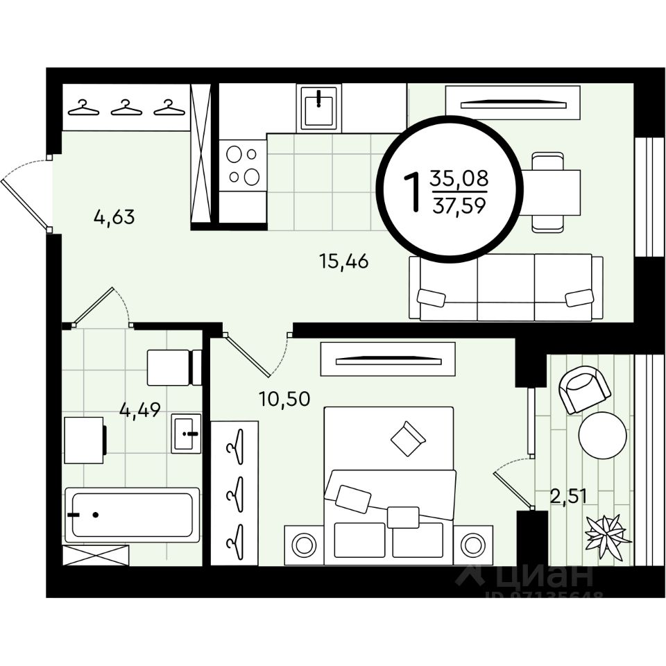 Общая площадь37,59 м2