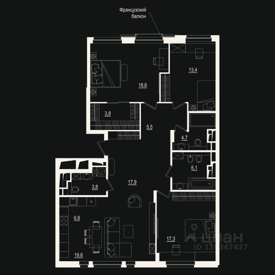 Общая площадь117,25 м2
