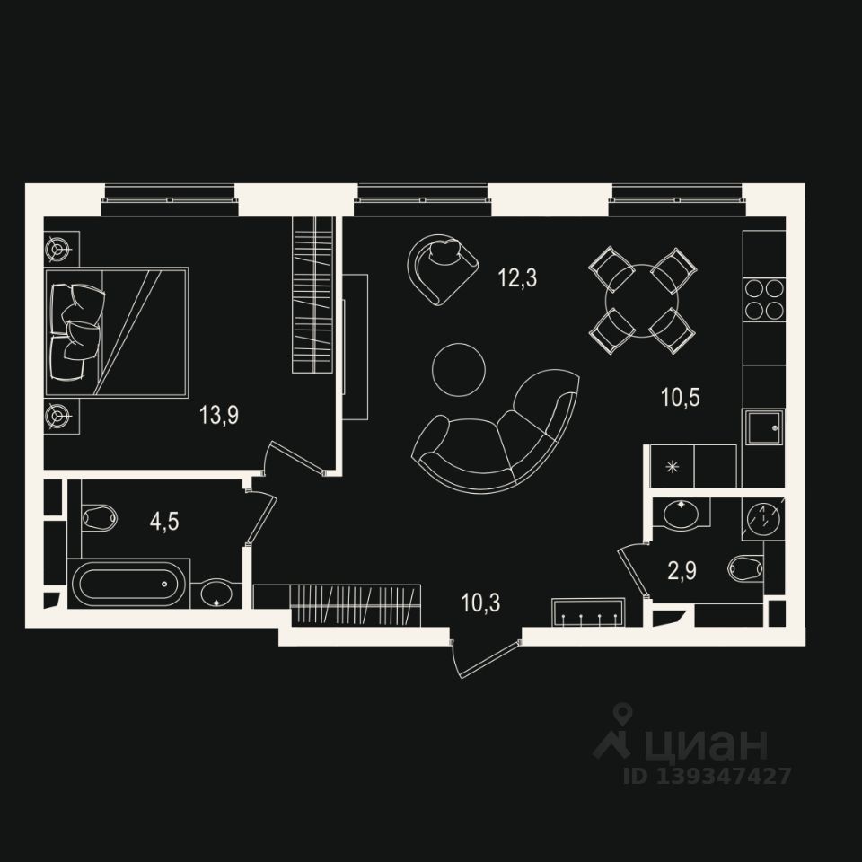 Общая площадь54,17 м2