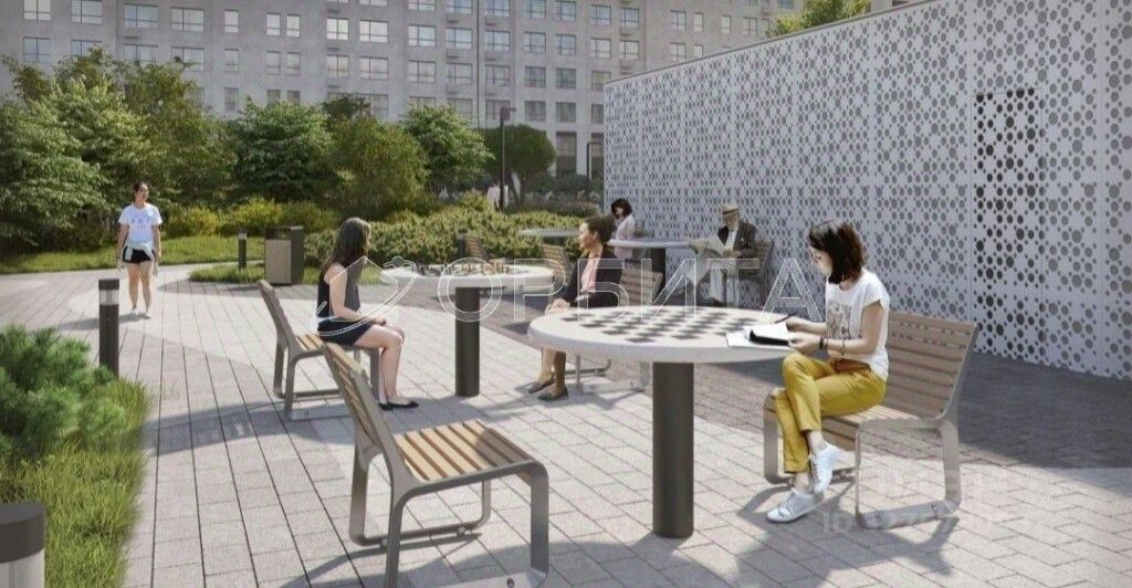Закрытая дворовая территория, полностью оборудованная детской игровой зоной и местами для отдыха